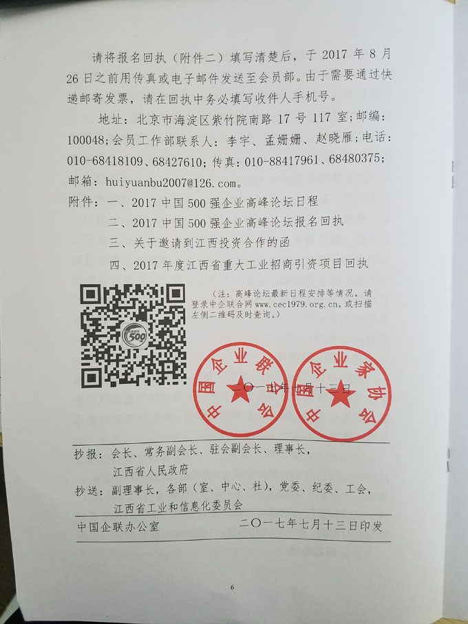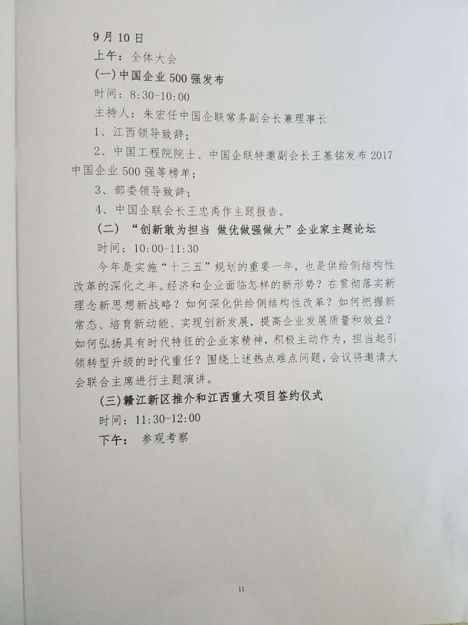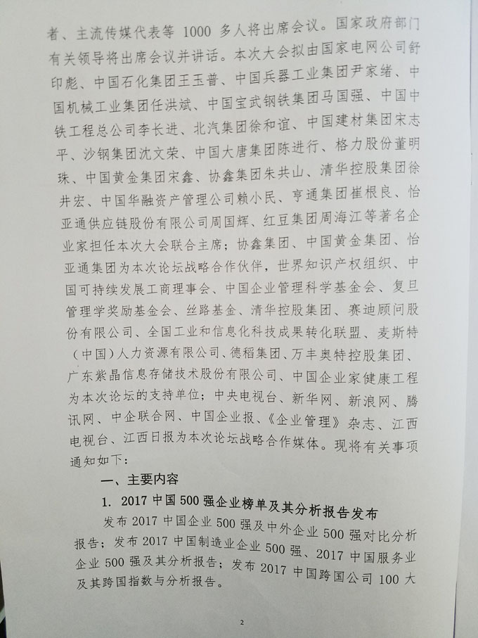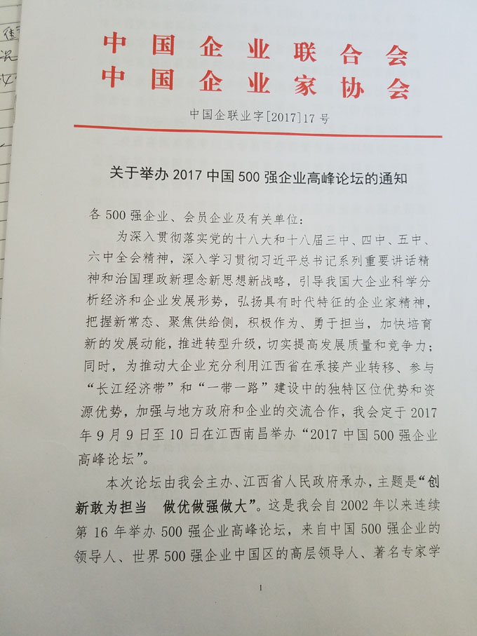 關(guān)于舉辦2017中國(guó)500強(qiáng)企業(yè)高峰論壇的通知