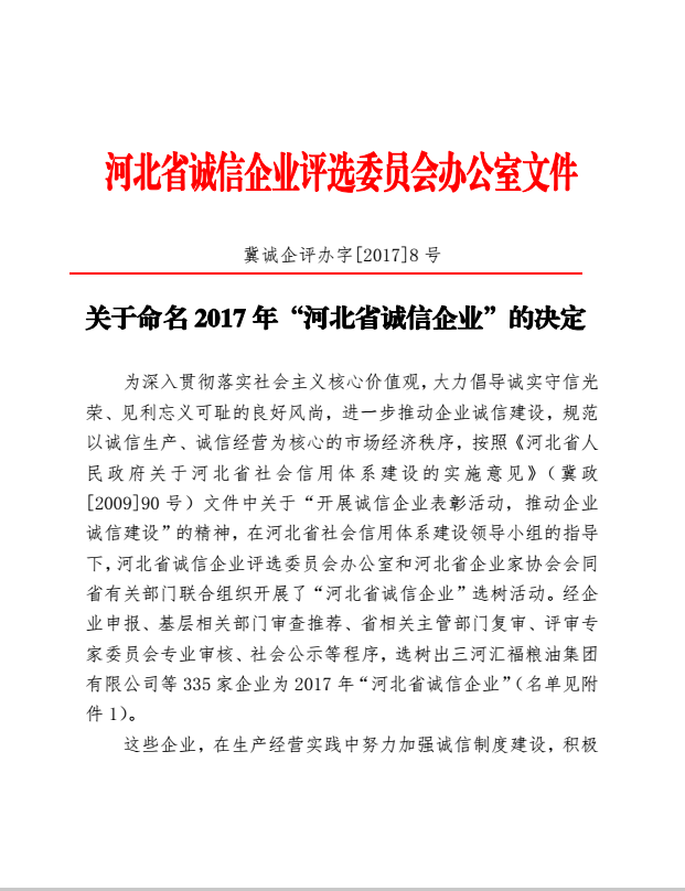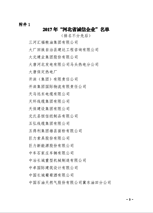 >關于命名 2017年“河北省誠信企業(yè)”的決定