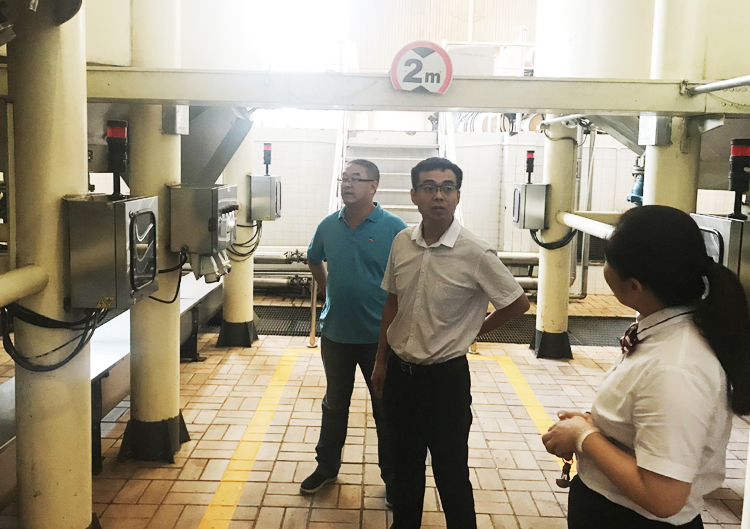 張英杰副秘書(shū)長(zhǎng)(中)參觀長(zhǎng)城葡萄酒有限公司生產(chǎn)車(chē)間