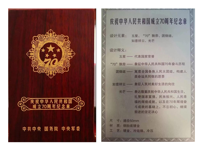 頒發“慶祝中華人民共和國成立70周年”紀念章,是新中國成立70周年系列慶祝活動的重要組成部分,對于加強愛國主義教育,培育和踐行社會主義核心價值觀,增強中國特色社會主義偉大事業凝聚力和感召力,具有十分重要的意義。