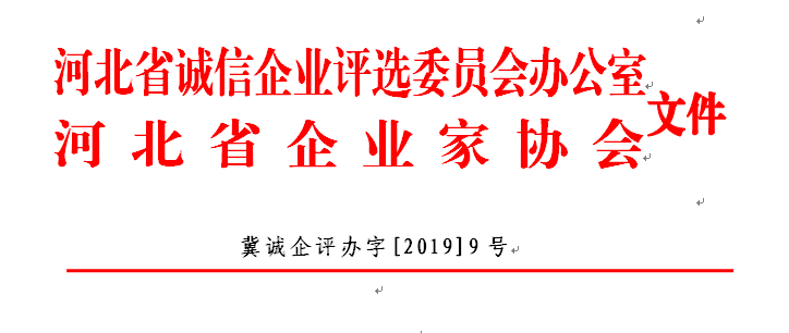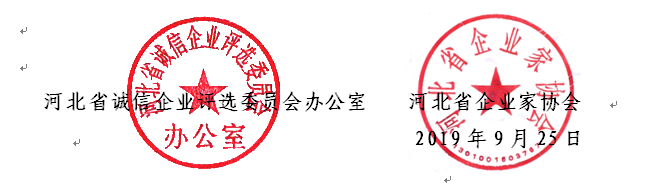 河北省誠信企業(yè)評選委員會辦公室 2019年9月25日印