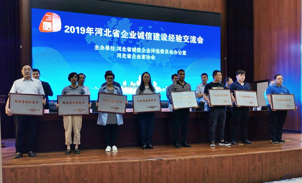 2019年9月25日,“河北省企業(yè)誠信建設(shè)交流會”在石家莊市上東國際大酒店召開。“河北省誠信企業(yè)”評價活動,已連續(xù)舉辦了13年,13年來評價出一大批我省的誠信經(jīng)營的典型企業(yè),對我省信用體系建設(shè)工作起到很好的示范帶動作用。