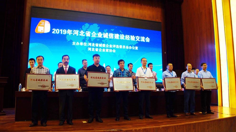 2019河北省誠信企業(yè)”標(biāo)企業(yè)表上臺領(lǐng)牌證
