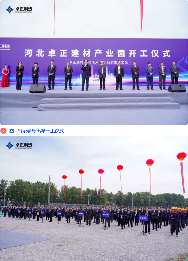 協(xié)會(huì)副會(huì)長(zhǎng)單位卓正控股集團(tuán)旗下河北卓正建材產(chǎn)品園,5月17日在保定徐水區(qū)大王店舉行開工儀式。