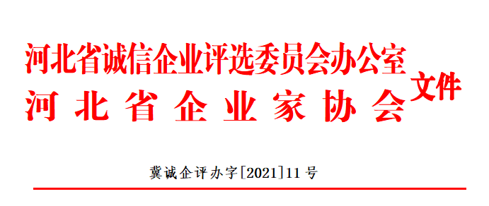 關(guān)于命名2021年“河北省企業(yè)誠信建設(shè)