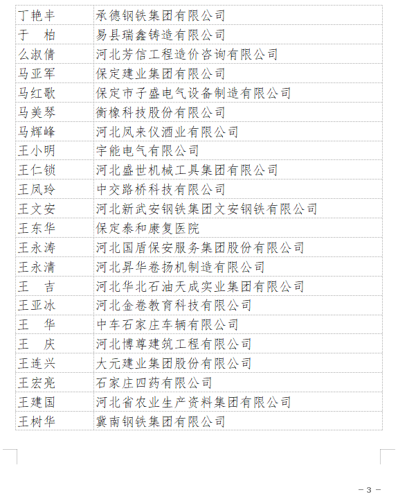 2021年“河北省企業(yè)誠信建設(shè)優(yōu)秀工作者”名單