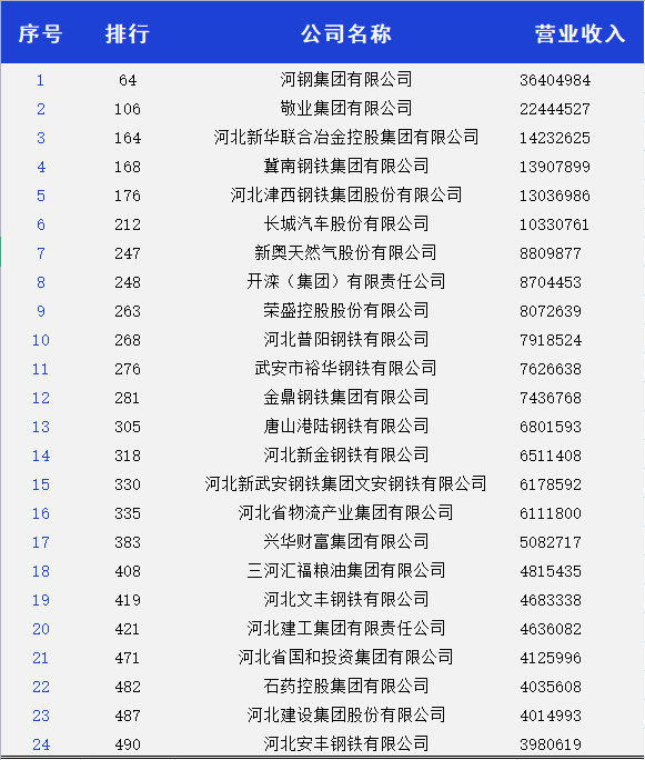 河北24家企業(yè)榜單