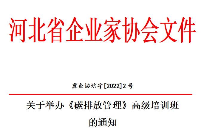 為深入貫徹國(guó)務(wù)院辦公廳《國(guó)務(wù)院關(guān)于加快建立健全綠色低循環(huán)發(fā)展經(jīng)濟(jì)體系的指導(dǎo)意見(jiàn)》文件精神,響應(yīng)人力資源和社會(huì)保障部“技能中國(guó)行動(dòng)”實(shí)施方案,培育合格的碳排放管理專業(yè)技術(shù)人才,助力我國(guó)“雙碳目標(biāo)”早日達(dá)成。由河北省企業(yè)家協(xié)會(huì)主辦,河北省企業(yè)創(chuàng)新職業(yè)資格培訓(xùn)中心承辦的碳排放管理的培訓(xùn)工作正式開(kāi)啟,具體事項(xiàng)如下: