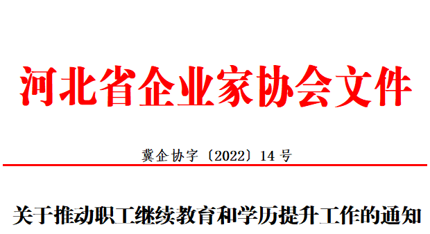 為貫徹落實省委、省政府辦公廳印發(fā)的《關(guān)于推動職業(yè)教育高質(zhì)量發(fā)展加快建設技能型人才強省的實施意見》,鼓勵行業(yè)企業(yè)開展技術(shù)技能人才培養(yǎng)培訓,推行終身職業(yè)技能培訓制度和在崗繼續(xù)教育制度,進一步優(yōu)化企業(yè)員工的知識結(jié)構(gòu)和崗位技能,提高員工整體學歷層次水平,培養(yǎng)企業(yè)高科技人才和高素質(zhì)職工隊伍,為企業(yè)在激烈的市場競爭中提供不竭的強勁動力,加強繼續(xù)教育提高員工素質(zhì)是新時代企業(yè)發(fā)展壯大的必由之路。河北省企業(yè)家協(xié)會結(jié)合《實施意見》和會員企業(yè)實際,為進一步促進企業(yè)員工綜合素質(zhì)和企業(yè)效益的“雙提高”,面向全省會員企業(yè)開展在職員工“不脫產(chǎn)”繼續(xù)教育和學歷提升工作。現(xiàn)將有關(guān)事項通知如下: