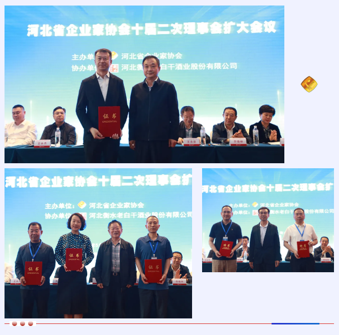 2025年4月24日,河北省企業(yè)家協(xié)會(huì)十屆二次理事會(huì)擴(kuò)大會(huì)議在衡水召開(kāi)。出席會(huì)議的領(lǐng)導(dǎo)有:協(xié)會(huì)會(huì)長(zhǎng)、河鋼集團(tuán)總經(jīng)理、黨委副書(shū)記、副董事長(zhǎng)王蘭玉,名譽(yù)會(huì)長(zhǎng)、河北省建設(shè)投資公司原黨委書(shū)記、總經(jīng)理王永忠,省人大常委會(huì)農(nóng)業(yè)和農(nóng)村工作委員會(huì)原主任劉書(shū)為,省發(fā)改委原一級(jí)巡視員喬曉林,省工商聯(lián)二級(jí)巡視員、省非公有制經(jīng)濟(jì)商(協(xié))會(huì)黨委副書(shū)記王永杰,省國(guó)資委原二級(jí)巡視員張瑞娥,省工商聯(lián)法律服務(wù)部部長(zhǎng)郭雙利,省人力資源和社會(huì)保障廳勞動(dòng)關(guān)系處副處長(zhǎng)韓軍良,省總工會(huì)權(quán)益保障部二級(jí)調(diào)研員王亞萍,省工業(yè)經(jīng)濟(jì)聯(lián)合會(huì)秘書(shū)長(zhǎng)張曉明;副會(huì)長(zhǎng)有:河北省企業(yè)家協(xié)會(huì)黨支部書(shū)記劉建軍、河北寧紡集團(tuán)有限責(zé)任公司總經(jīng)理徐建林、河北飛鴻集團(tuán)有限公司總經(jīng)理張建躍、滄州市市政工程股份有限公司董事長(zhǎng)吳英彪;監(jiān)事會(huì)主席:石家莊數(shù)英儀器有限公司董事長(zhǎng)鄧志成。